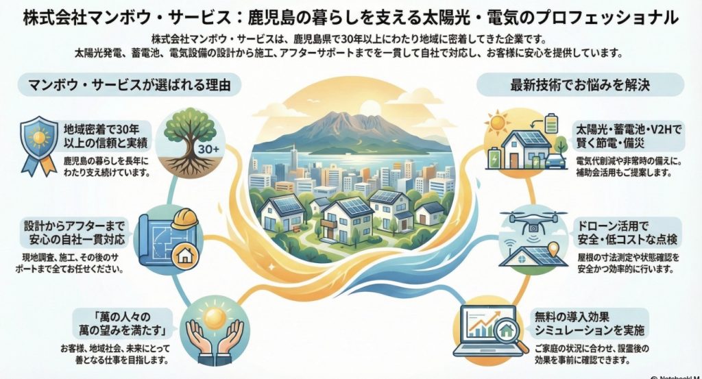 鹿児島県内の地域ごとの特性や導入ポイントは、 鹿児島 太陽光発電 総合ページ で詳しく解説しています。