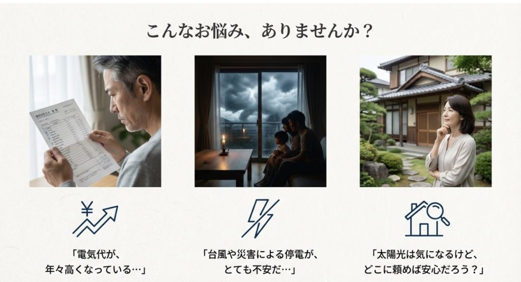 ご自宅の屋根条件や電気の使い方に合った形で導入できれば、 光熱費対策と停電時の備えを両立しやすくなります。